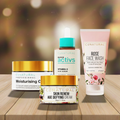 A complete glow-boosting routine! Our Vitamin C serum brightens dark spots, anti-aging cream reduces fine lines, rose wash gently cleanses, and moisturizer locks in hydration for plump, youthful skin.